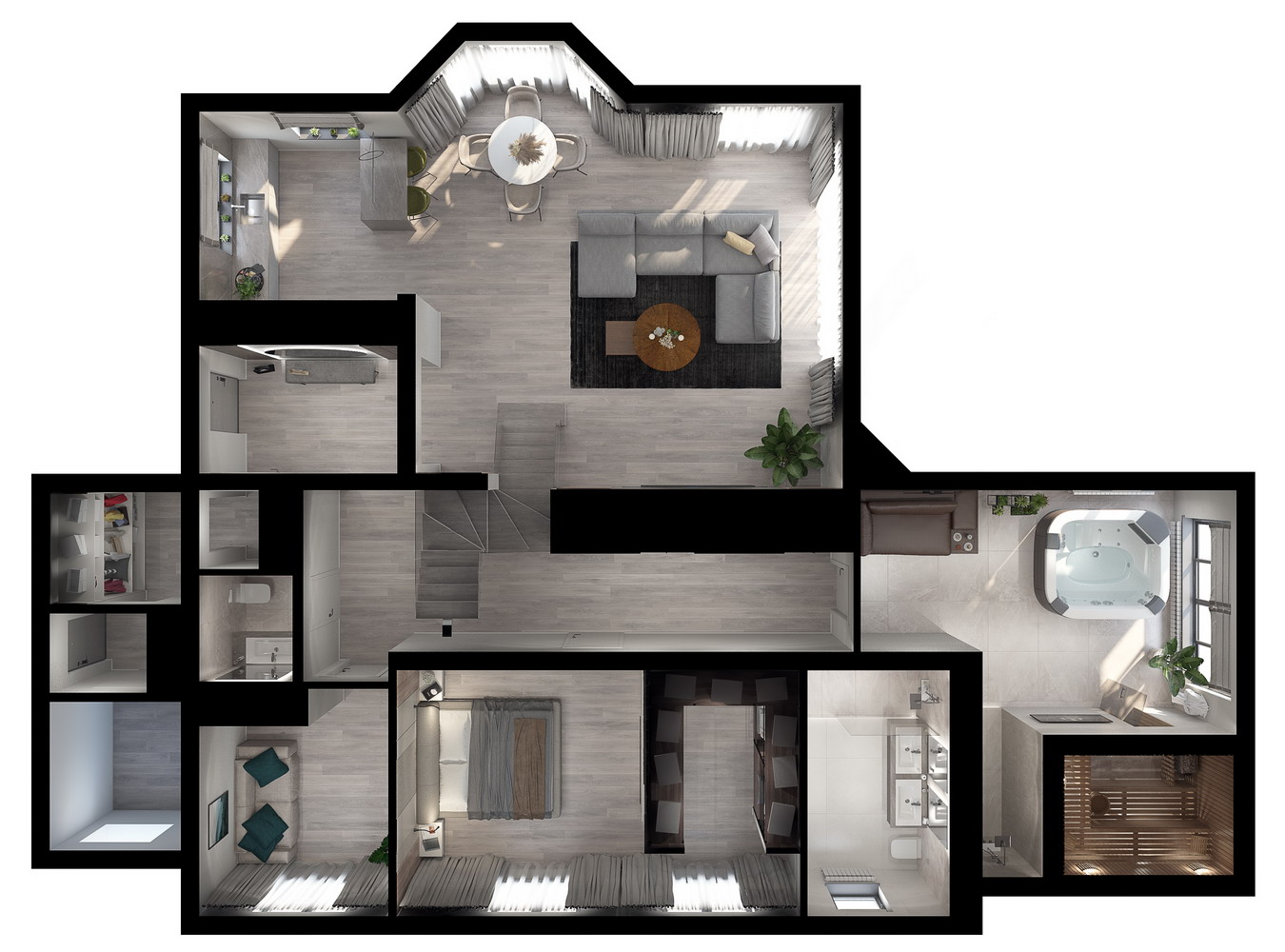 Объект: 2ух этажный дом (полная реконструкция), 8 комнат, 3 санузла, сауна, гараж, 335кв.м.